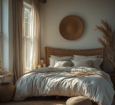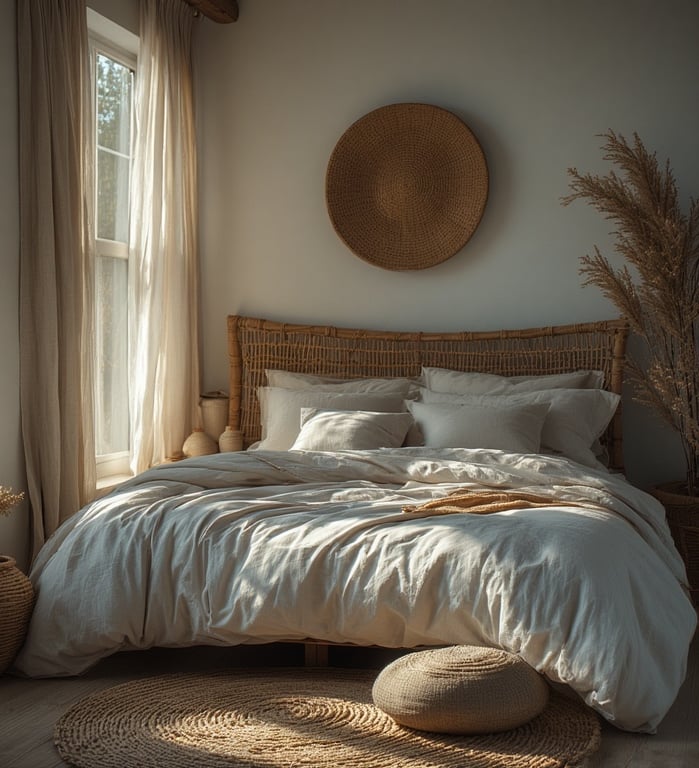 Keep it airy — think cotton throws, wicker chairs, and handmade pottery. The look is effortlessly personal, with textures and tones that invite you to slow down and unwind.