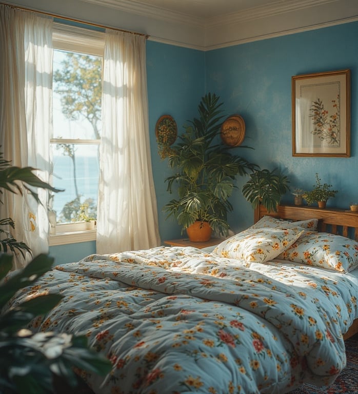 7. Blue Botanical Bedroom – Nature-Inspired Serenity